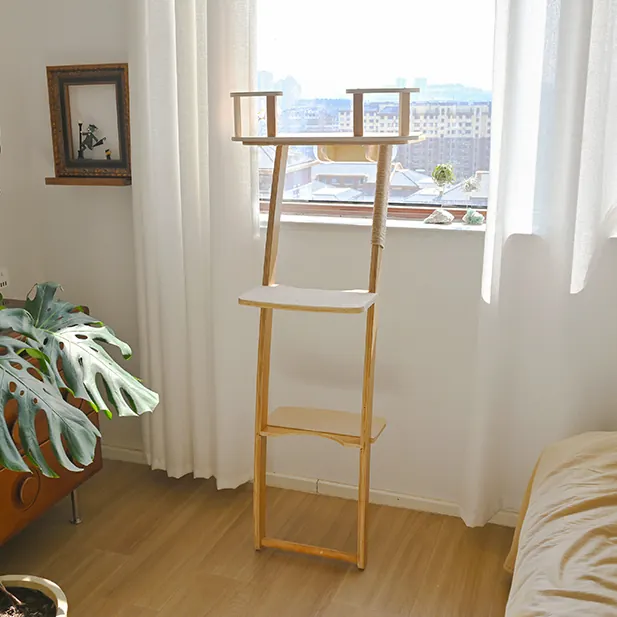 Grâce à son système hybride ventouses-ancrages renforcée, cet arbre à chat mural reste stable même sous les bonds dynamiques jusqu’à 20 kg. Son bois E0 soigneusement poli assure confort et sécurité à chaque pas. Sa combinaison de design en escalier est parfaite que ce soit pour les grimpeurs, les petites pattes ou les seniors moins agiles.