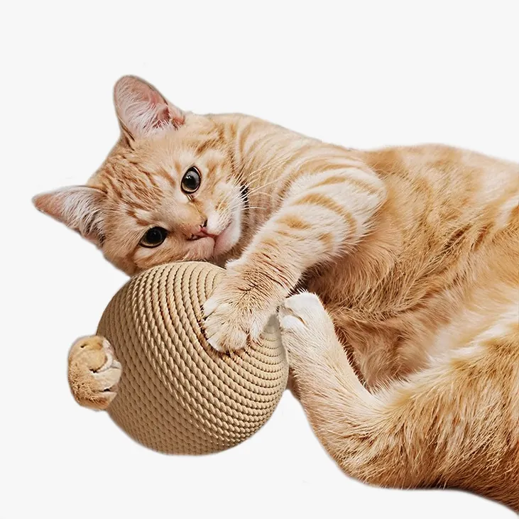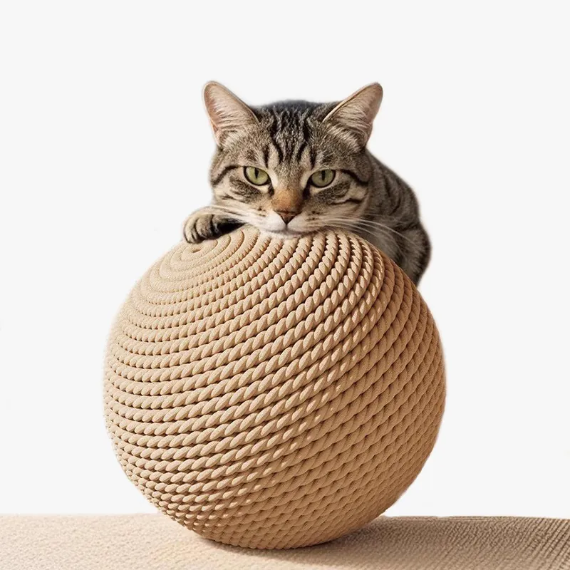 Son revêtement en sisal naturel tissé serré offre une surface parfaite qui satisfait leurs instincts de griffage tout en résistant à l’usure intensive. Sa forme sphérique encourage le jeu autonome de votre miaou : une solution idéale pour les propriétaires souvent absents ! Matériau