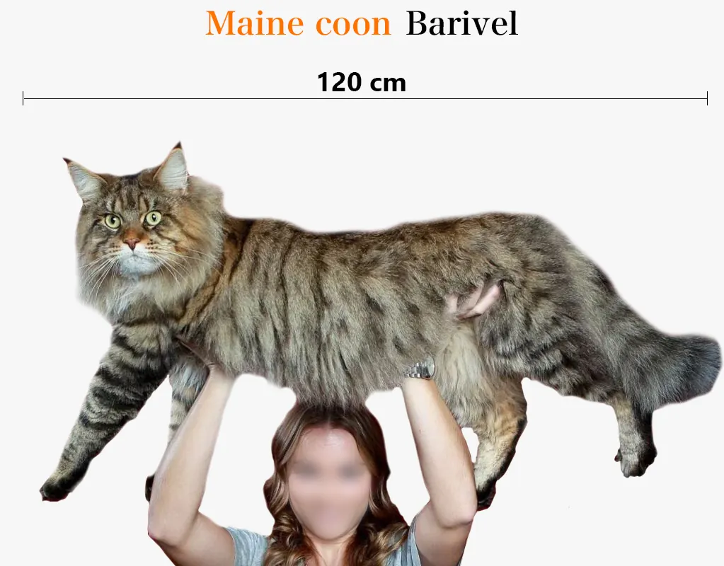 Avant Barivel, le record était détenu par un autre Maine Coon, Stewie, qui mesurait 123 cm mais est décédé en 2013. Le Maine Coon détient également le record du chat le plus lourd non obèse : certains mâles peuvent atteindre 12 kg tout en conservant une silhouette athlétique et musclée.