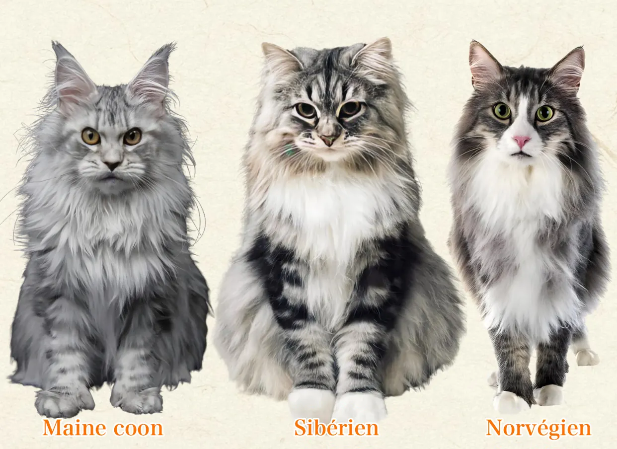 Quelle est la principale différence entre Maine Coon, Sibérien et Norvégien ?