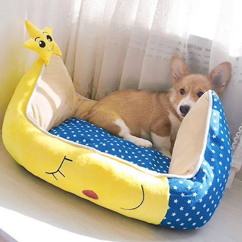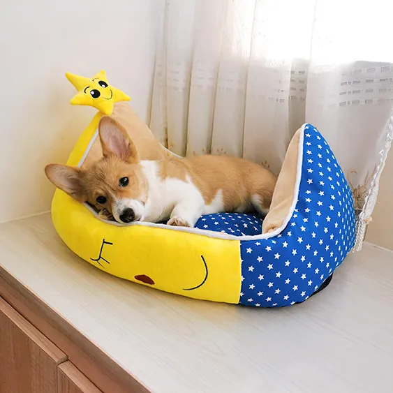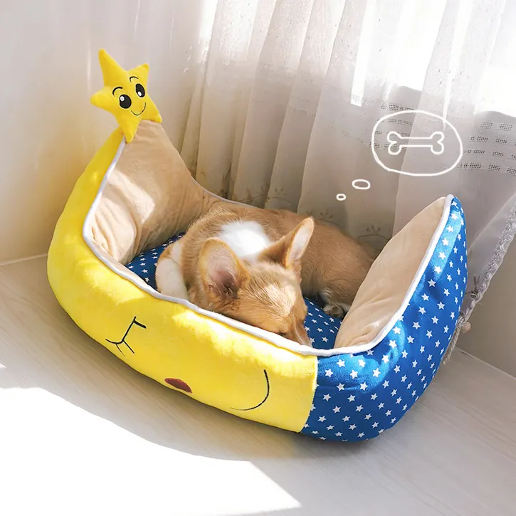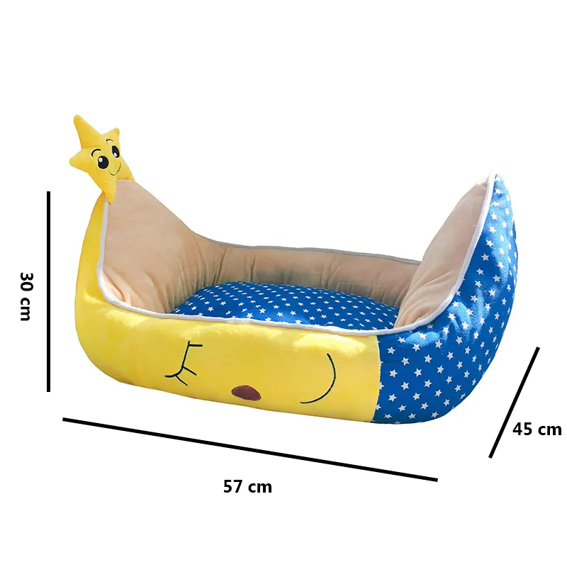 Le motif étoilé ajoute une touche ludique à ce couchage fonctionnel. La petite étoile décorative fixée sur l’extrémité de la lune peut même devenir un compagnon de jeu pour votre chien. Ce panier s’intègre harmonieusement dans votre intérieur tout en répondant aux besoins de repos de votre animal.