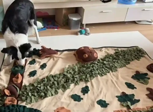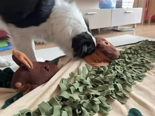 Un tapis de fouille est un jouet interactif qui stimule le sens olfactif de votre chien. En y cachant des friandises dans ses replis, il incite votre chien à utiliser son flair pour les trouver, tout en s’amusant.