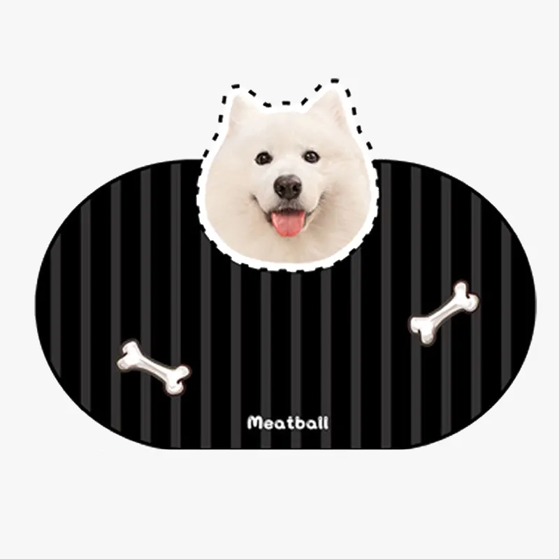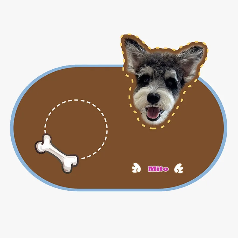 Transformez l’espace repas de votre compagnon avec ce tapis de gamelle personnalisé disponible en 6 couleurs élégantes. Ajoutez la photo adorable de votre chien ou chat directement sur le tapis pour créer un accessoire unique qui célèbre votre lien spécial.